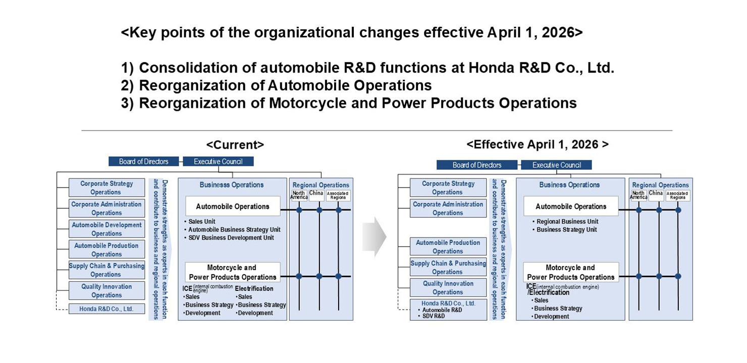 Honda says the transformation is designed to accelerate its shift toward electrification and intelligent technologies, positioning the company as a more agile and future-ready mobility brand in an era defined by rapid technological change.