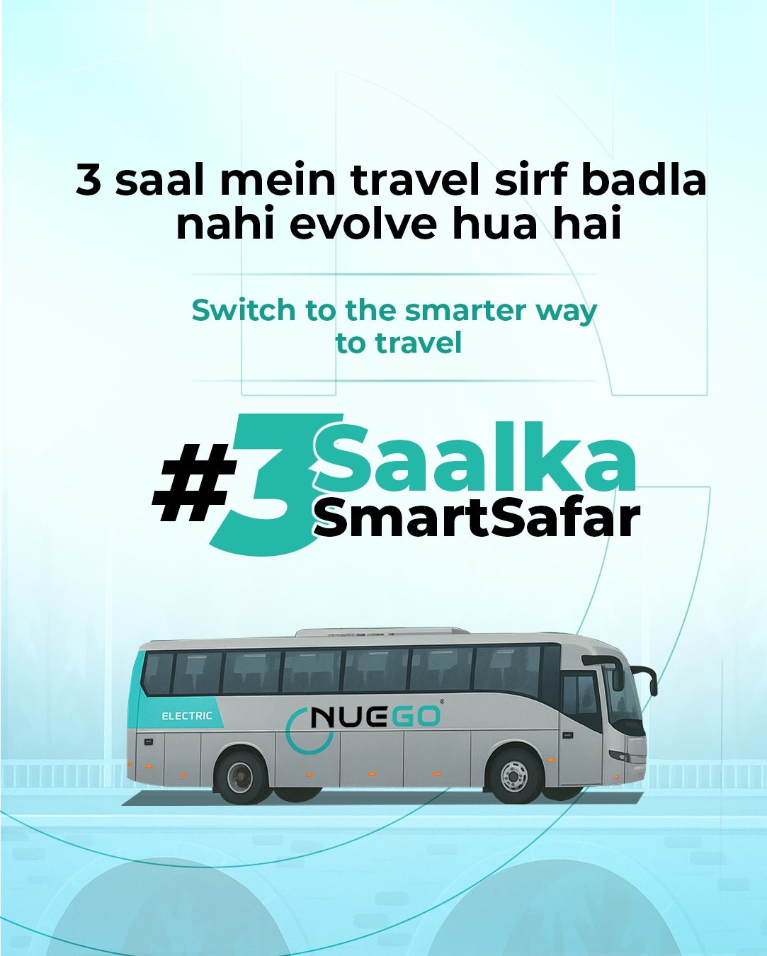 NueGo, the electric intercity bus service by GreenCell Mobility, has completed three successful years in India. With a fleet of 300+ electric buses across 120+ cities, NueGo operates over 600 daily departures, offering travellers a greener, safer, and more inclusive way to journey between cities.