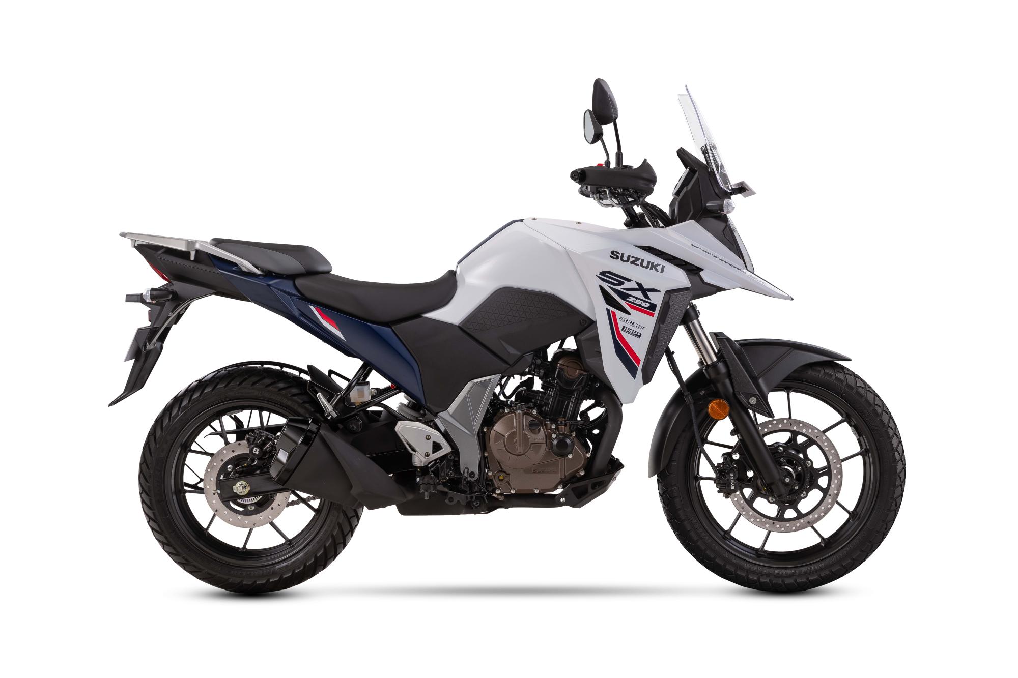 The new shades include Pearl Fresh Blue + Glass Sparkle Black, Champion Yellow No. 2 + Glass Sparkle Black, Pearl Glacier White + Metallic Mat Stellar Blue, and Glass Sparkle Black. Sporty graphics on the body and a textured pattern on the side panels enhance its adventurous yet stylish look, making the V-STROM SX a head-turner on city streets and highways alike.